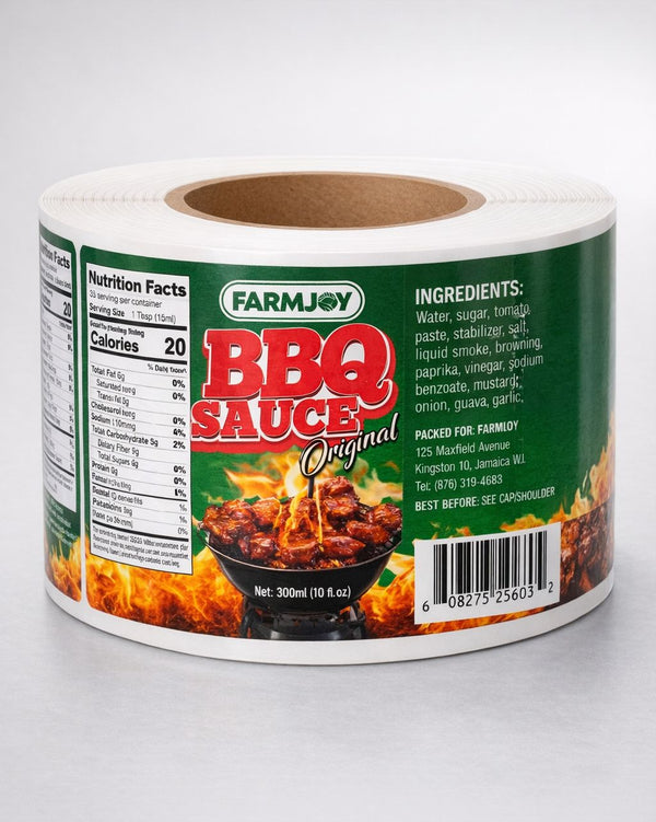 Premium roll labels with sharp print and strong adhesive for professional product packaging.